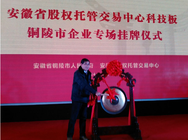 12月18日上午,省股權(quán)托管交易中心在銅陵市為25家科技板企業(yè)專場集中掛牌。 25家企業(yè)集中掛牌省股交中心科技板,是銅陵市重視運用多層次資本市場、助推企業(yè)發(fā)展的務(wù)實舉措,也是資本市場“銅陵板塊”多層次體系構(gòu)建的戰(zhàn)略性開啟。此舉在全省尚屬首創(chuàng)。近年來,銅陵市高度重視資本市場建設(shè)和金融產(chǎn)業(yè)發(fā)展,堅持走創(chuàng)業(yè)與創(chuàng)新相結(jié)合、資本與高科技相結(jié)合的發(fā)展之路,推動優(yōu)質(zhì)企業(yè)資源上市,著力形成包括主板、中小板、創(chuàng)業(yè)板、新三板、區(qū)域性股權(quán)交易市場等在內(nèi)的多層次資本市場體系,打造特色鮮明的“銅陵板塊”。我公司成為25家首批掛牌企業(yè)之一。